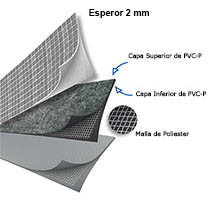 También llamadas Liner, están hechas de 2 capas de PVC y reforzadas con fibras de poliester, haciéndolas altamente resistentes y duraderas. Luego son tratadas con una laca especial para darles protección añadida contra los rayos UV, productos químicos, cremas solares, aceites corporales y contra la abrasión. La composición del revestimiento también incluye propiedades antibacterianas.